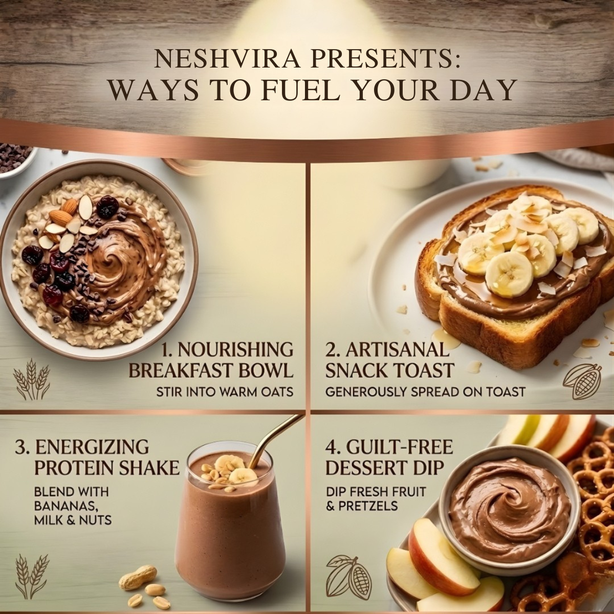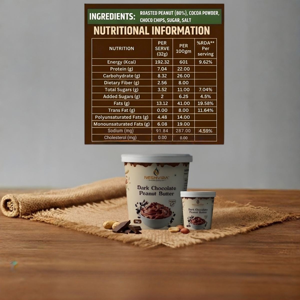 NESHVIRA Dark Chocolate Peanut Butter combines slow-roasted peanuts with rich dark chocolate to create a smooth, indulgent yet protein-packed spread. Crafted without palm oil, preservatives, or hydrogenated oils, it offers a better alternative to regular chocolate spreads.